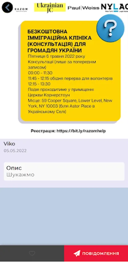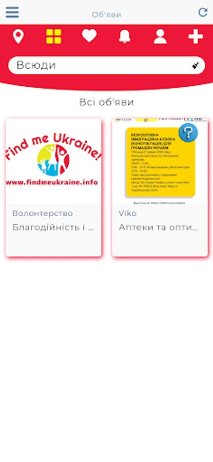 Our application allows you to post your information for free to anyone, helps to place and search for volunteer services, goods, businesses, sponsors and legal information from different countries that will unite the efforts of Ukrainians around the world to help the Motherland and the Ukrainian people in this difficult time. after our Victory in the reconstruction and restoration of Ukraine.
