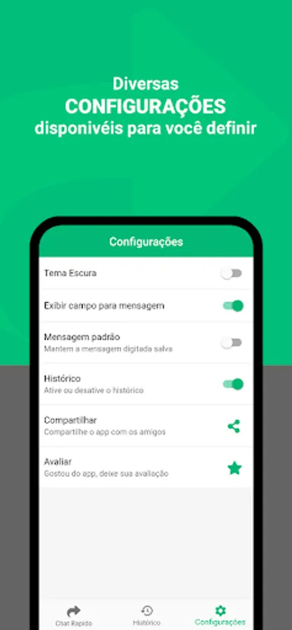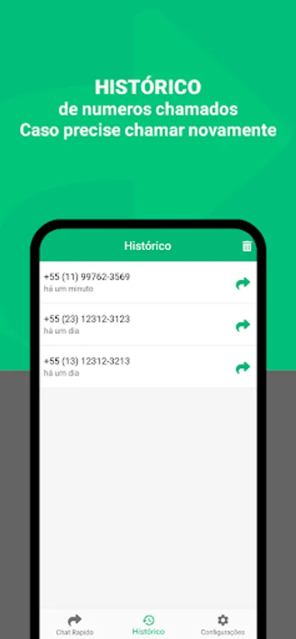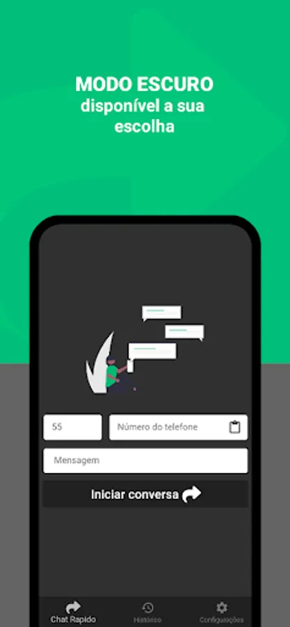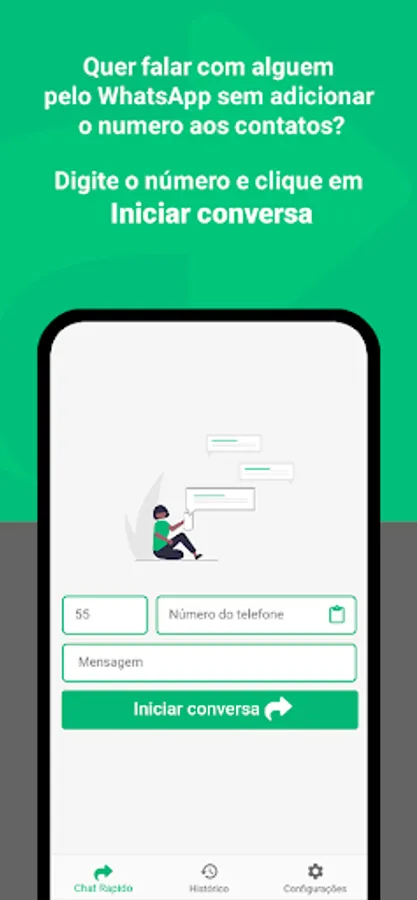 Quick Chat is the ideal app to contact people without needing to add them to your contacts. With it, you simply type in the phone number and the app redirects you to the conversation with the desired contact. It's perfect for sales, customer service, quotes, and any other situation where you need to talk to someone without adding them as a contact. Additionally, Quick Chat keeps a history of the numbers you have contacted, making future conversations easier.