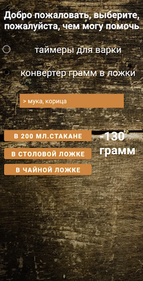 the application was created to make food preparation as easy as possible, especially for young housewives, it contains timers for basic preparations, converters of bulk and other products from grams to teaspoons, tablespoons, a glass, in the future we will add functions as much as possible for convenience and functionality