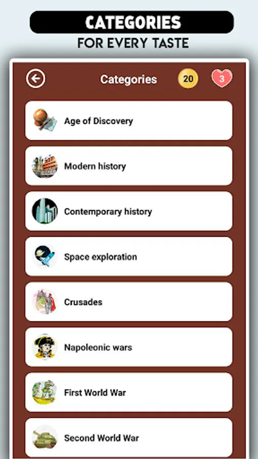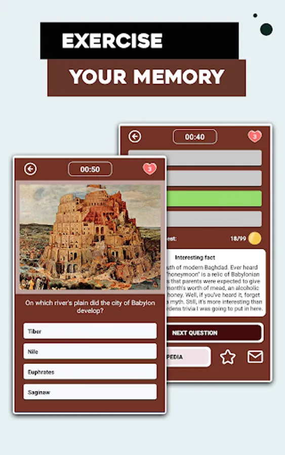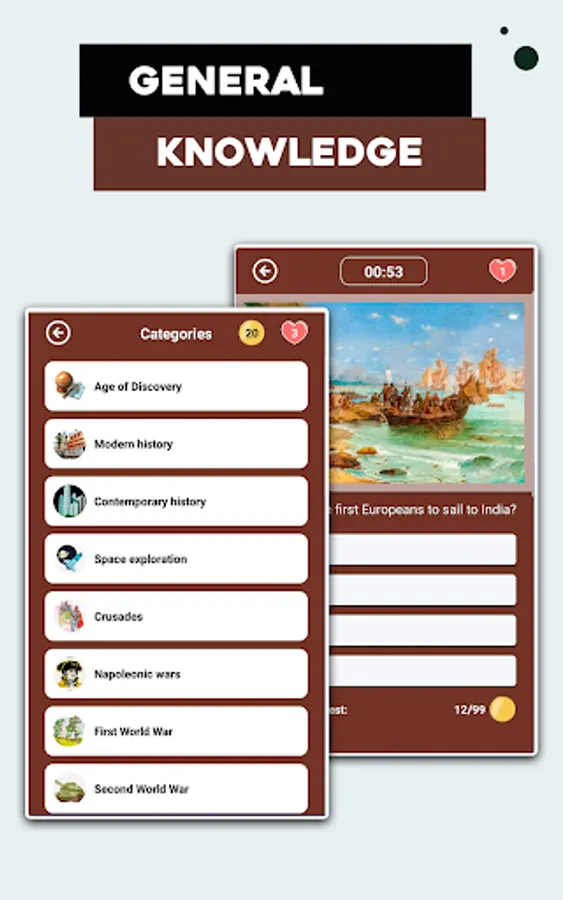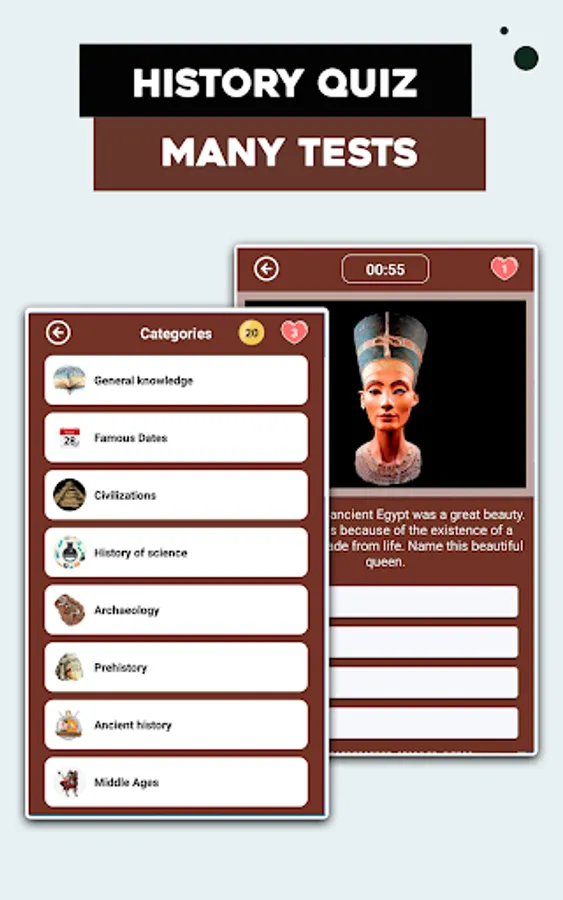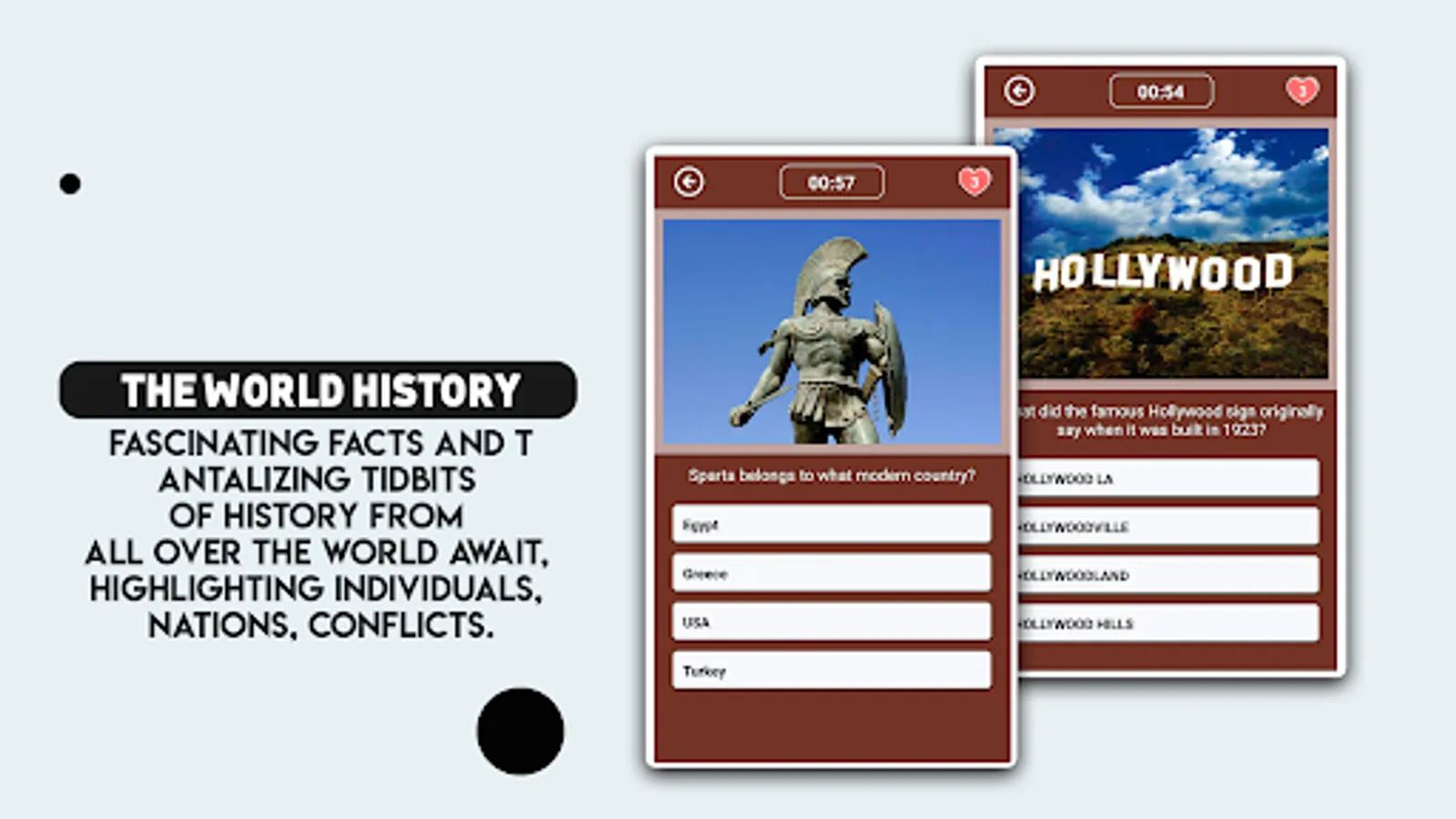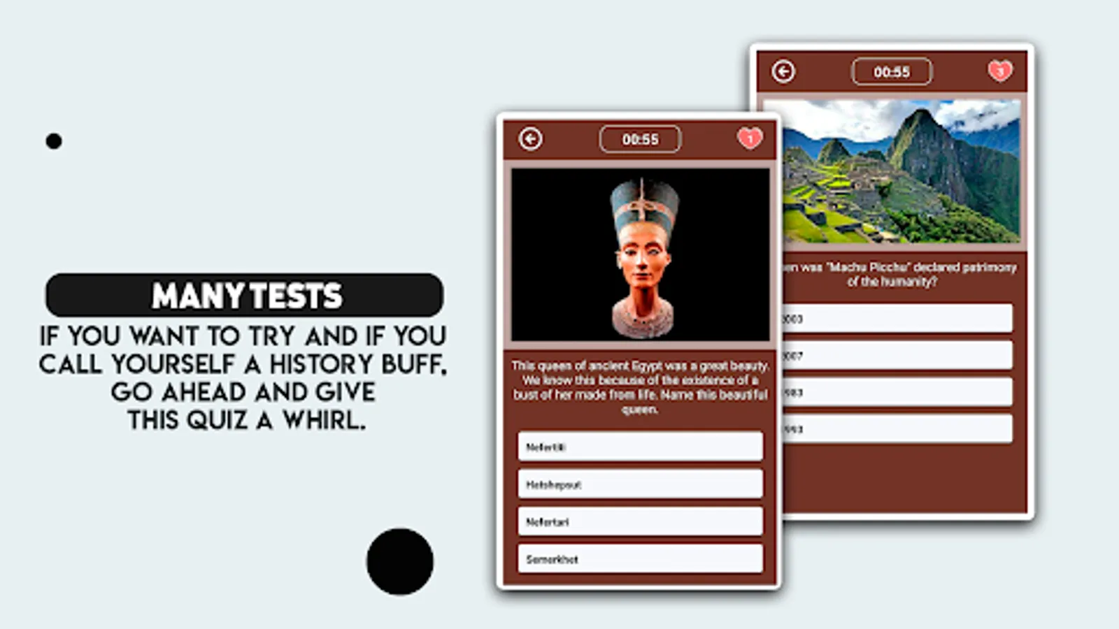 Install the application History Quiz - this is an entertaining game where you need to answer questions, guess the right answers, gain new knowledge and learn interesting facts!