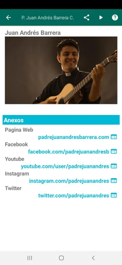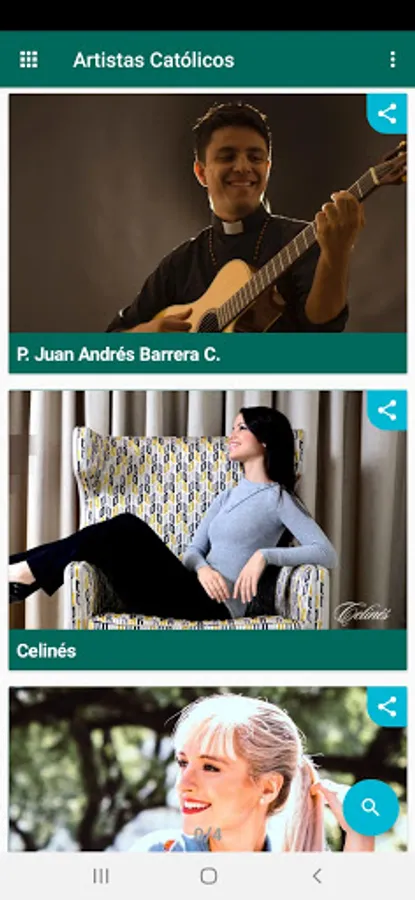 This application aims to have a catalog of Catholic artists, general information of their official social networks such as: