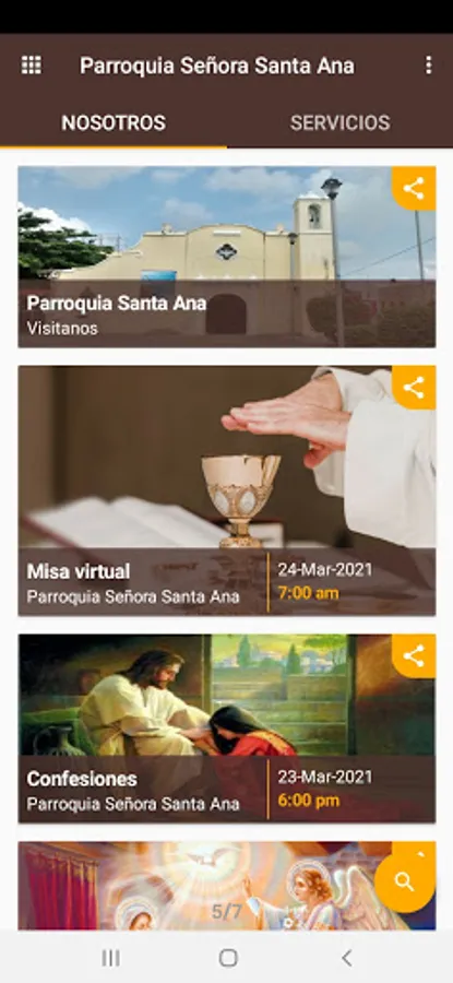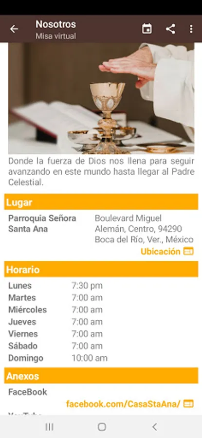 Application to inform the parishioner about the services offered by the parish of Nuestra Señora Santa Ana.