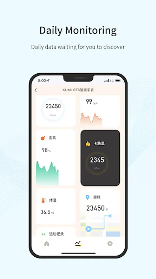 KUMI App can synchronize data such as steps, calories, mileage, sleep and exercise records recorded by the watch.