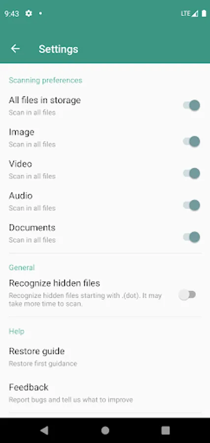 - It can scan all files at the same time or scan according to type (such as images, videos, documents, etc.).