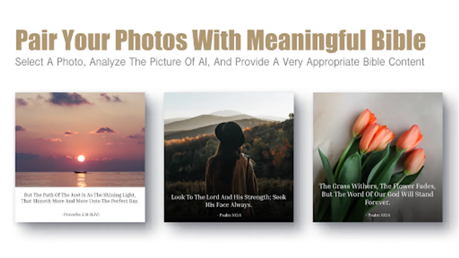 Pair your photos with meaningful Bible quotes effortlessly. Get inspired with our app today.