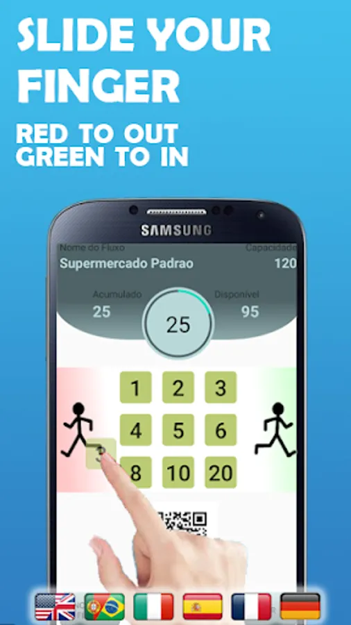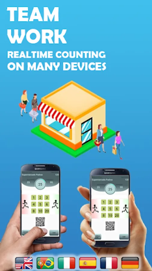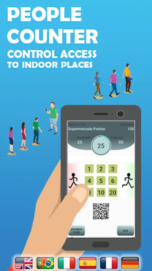 If the location you are controlling has more than one door, you will need one person at each access to control its flow. To configure this second controller, just point the QrCode reader at the cell phone that created the counter. Ready! The second cell phone is already configured and any operation made on one or the other will be updated in real time. And it will be like that with the third, fourth, fifth ...