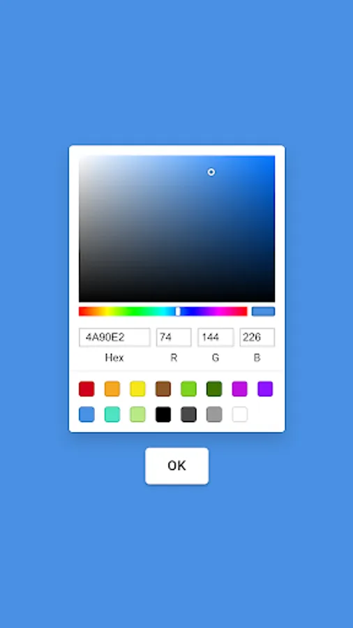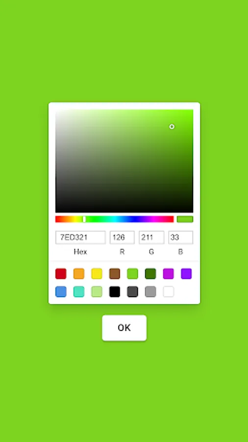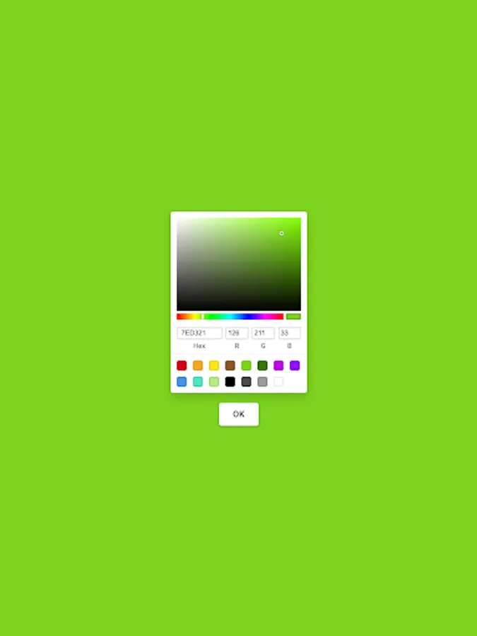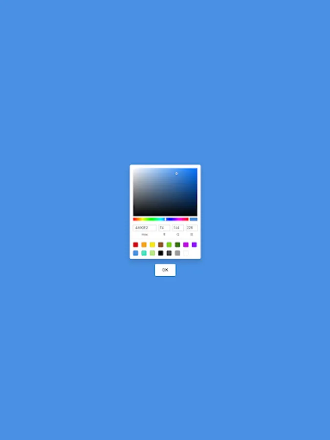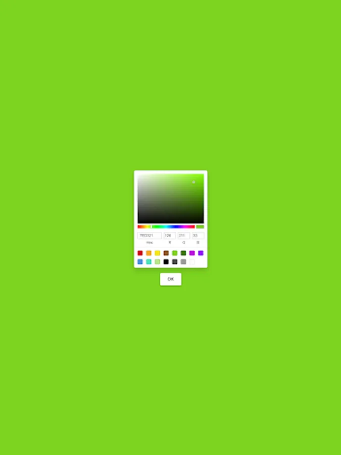 Select a color and fill your entire screen (fullscreen) with that color. When the screen is filled with a color, tap the screen to show the color picker again.