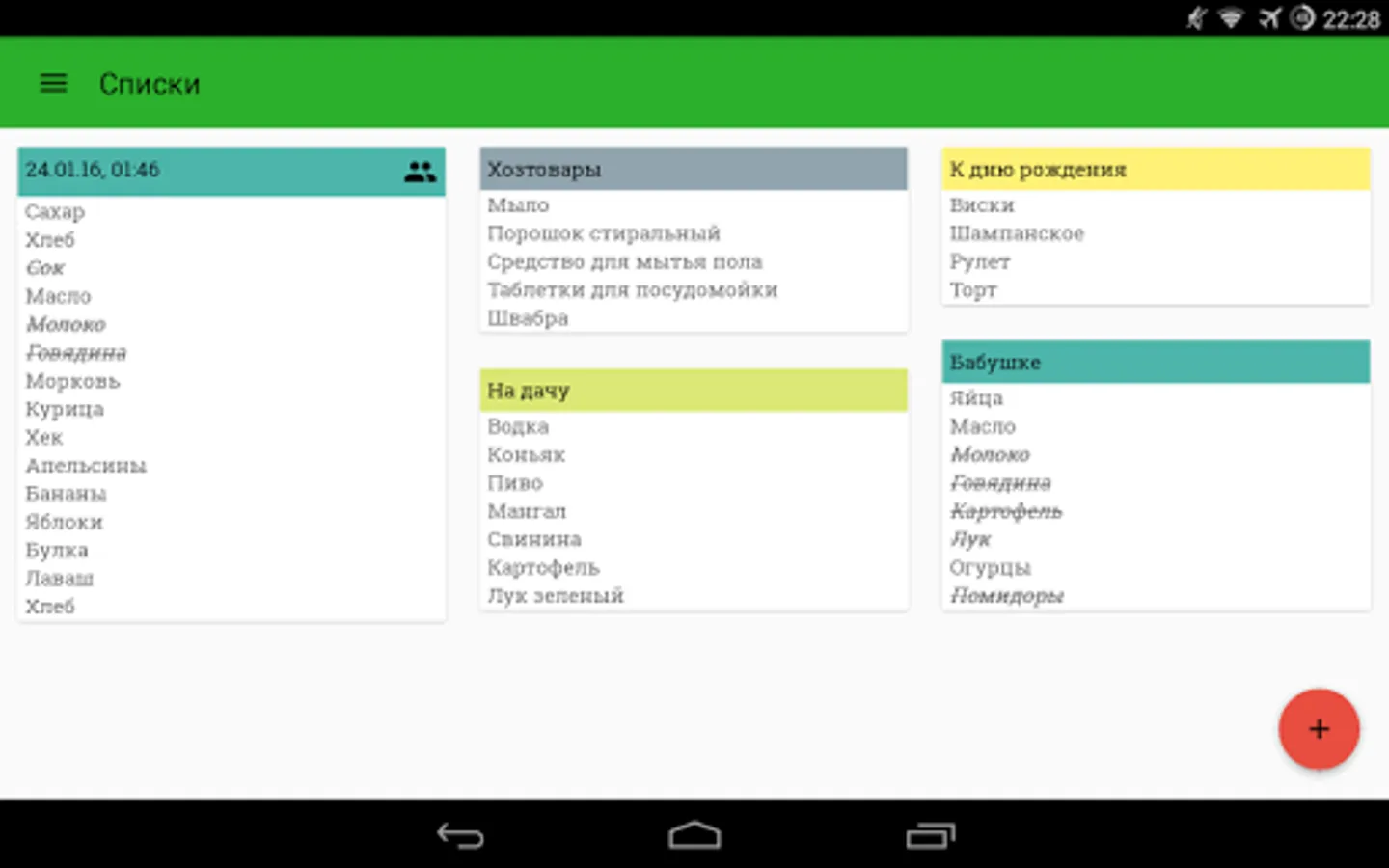 - Online synchronization of lists, templates and dictionaries between user devices (after registration in the program)