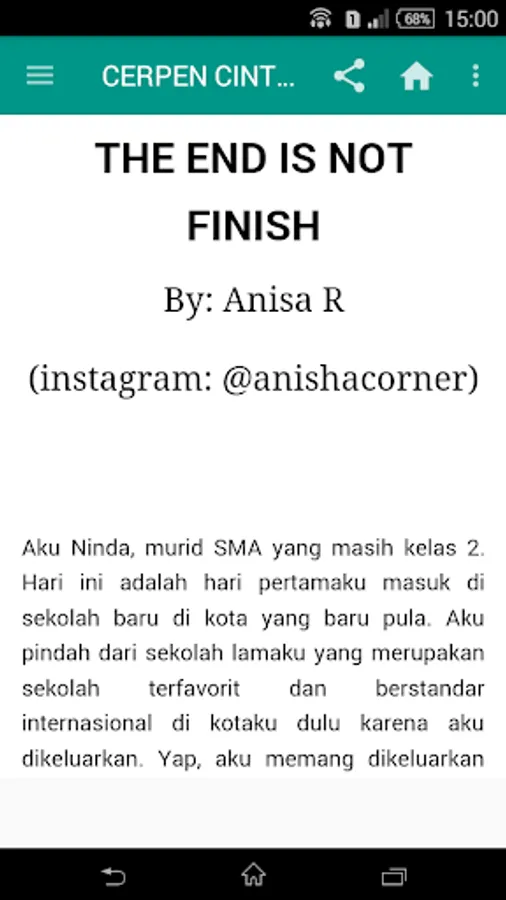 Bored with short stories that end up hanging and intriguing? Tired of reading novels with very thick pages? Curious to wait for continued serial stories that aren't released? Rather than most thinking, it's better to read short stories. Especially short stories with the nuances of love. Like this collection of Youth Love Short Stories Volume 2 that you open. Teen Love Short Stories is a collection of romantic love short stories that are suitable for teens like you. So, what are you waiting for? Immediately download this short story application. After that, rate and comment, according to you, which title of the short story do you like the most and make smiles when reading it. Thanks