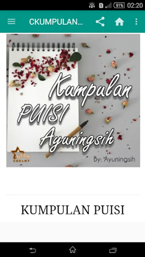 The poems contained in this application is an official of starcoklat as uploaders and spreader from the Author of poetry.