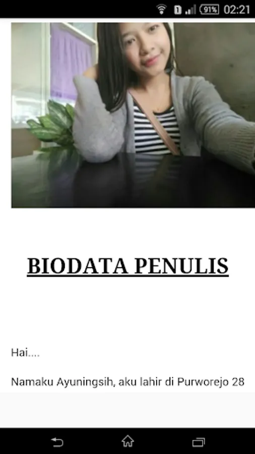 Ayuningsih poetry collection is a collection of poems by Ayuningsih and written directly by Ayuningsih. His poetry is about love, life, friendship and family.