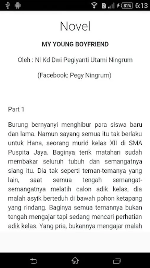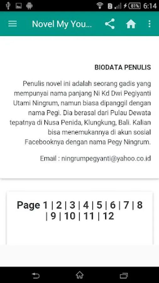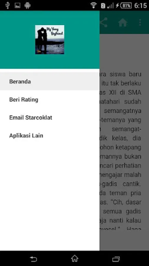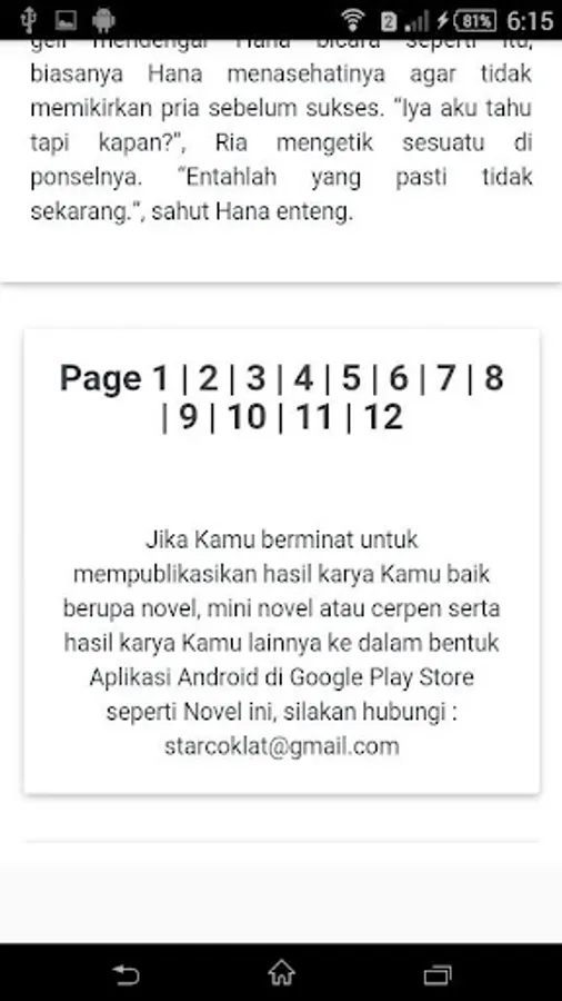 Jika Kamu berminat untuk mempublikasikan hasil karya Kamu baik berupa novel, mini novel atau cerpen serta hasil karya Kamu lainnya ke dalam bentuk Aplikasi Android di Google Play Store seperti Novel ini, silakan hubungi email kami : starcoklat@gmail.com
