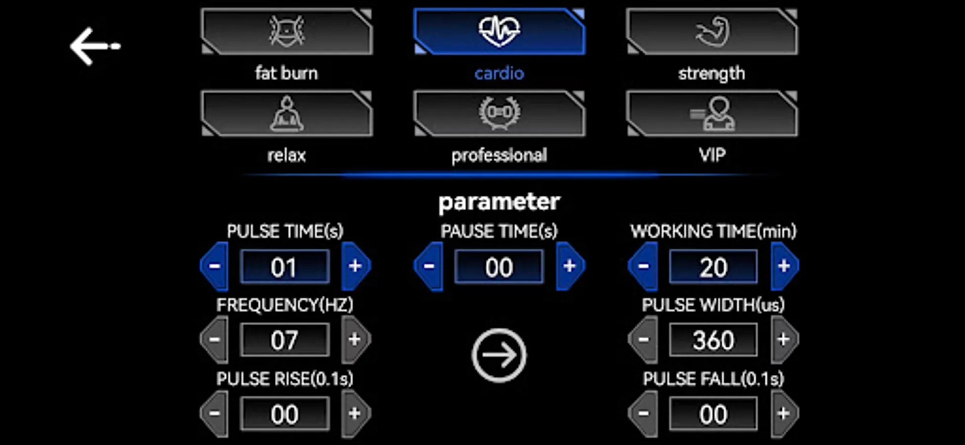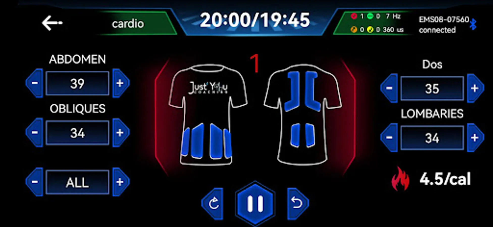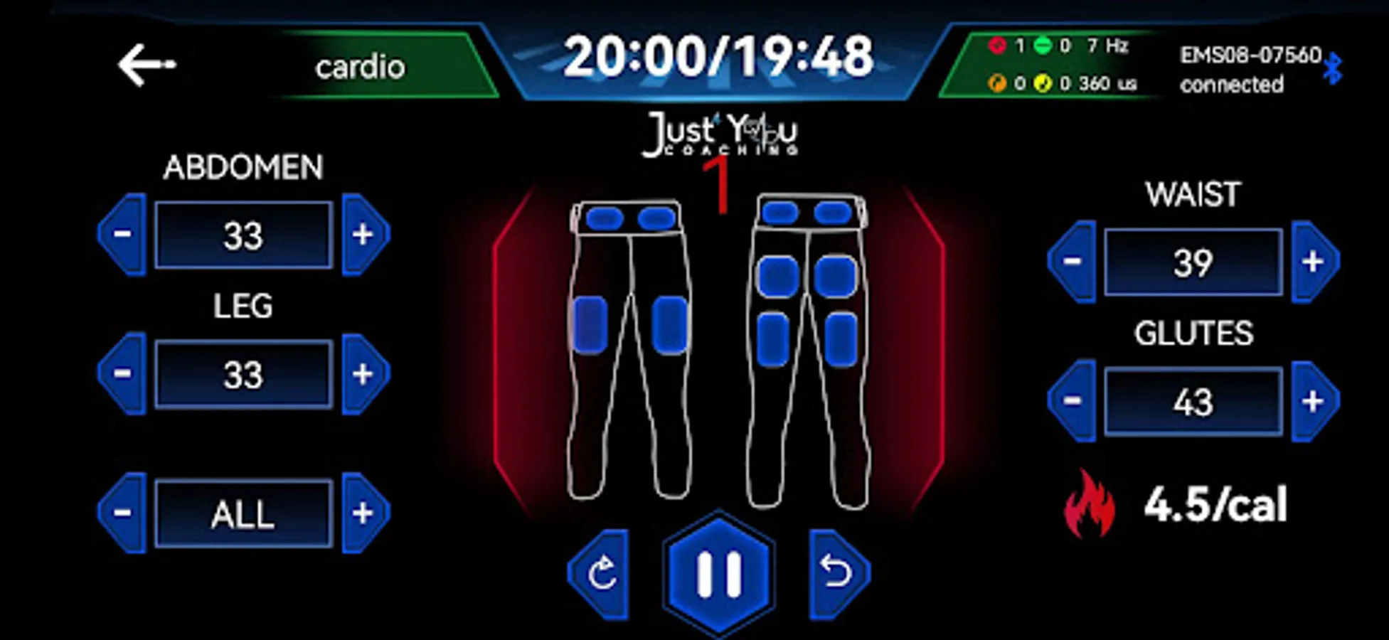 UST 4 APP is used to control the steady and continuous output of electrical pulse of smart box. EMS technology is to simulate human brain electric signal to stimulate motor nerve with the low frequency pulse current. EMS can command group muscles to work together, achieve development of muscle strength, reduce fat in shape, and realize the treatment of muscle tissue injury.