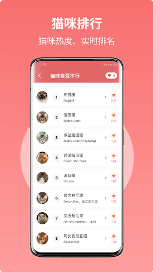 Daily popular cats are updated in real time, and you can also participate in the cat favorite rankings, support your favorite cats, and vote for your favorite cats!