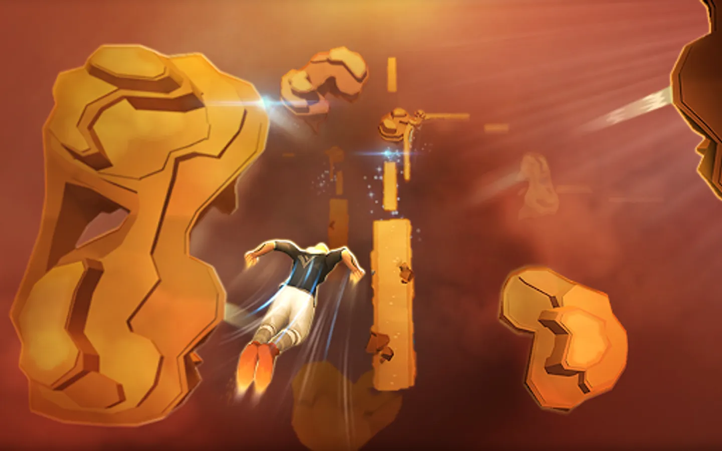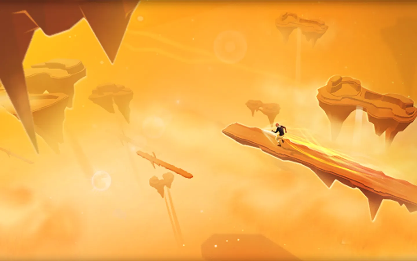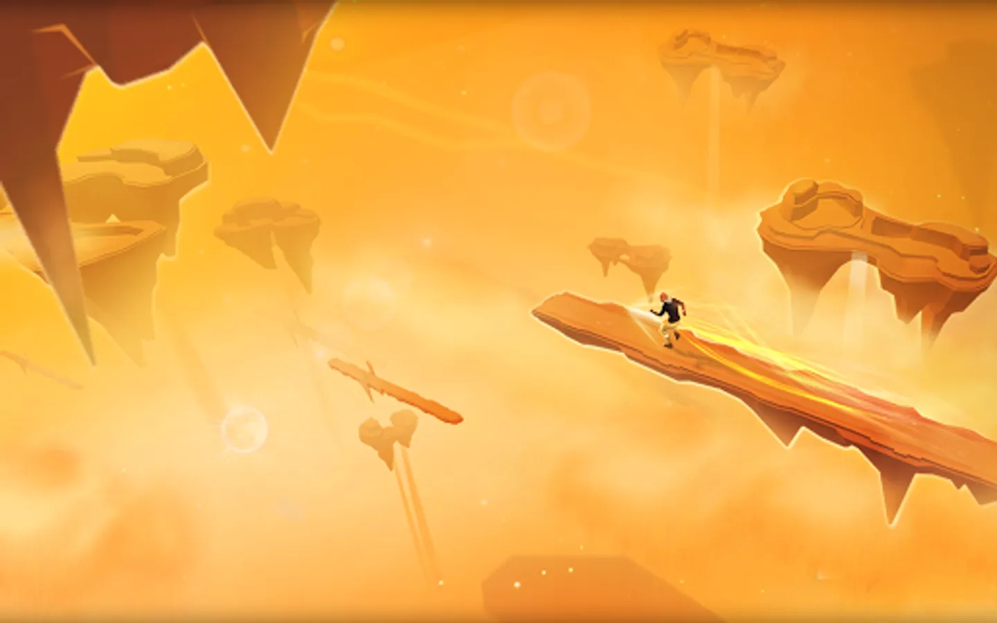 Run and jump across hazardous cliffs from one flying island to another, while avoiding large boulders. Feel free like a bird as you run through the skies and land gracefully trying to beat the endless abyss. Conquer all the dangerous terrains in different weather conditions from clear skies to storms which rage for days.