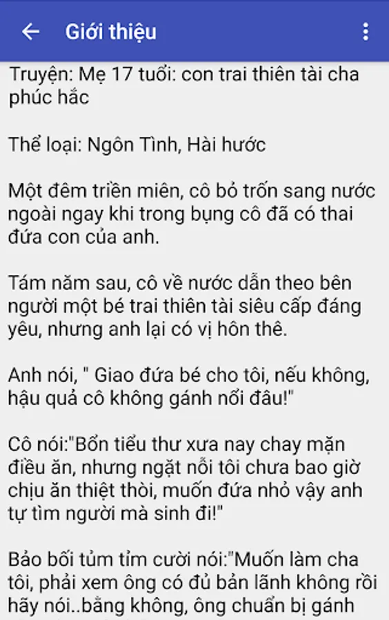 Ứng dụng đọc truyện ngôn tình offline Mẹ 17 tuổi con trai thiên tài cha phúc hắc gọn nhẹ, được tối giản với nhiều tùy chọn chế độ đọc, phù hợp với nhiều đời máy