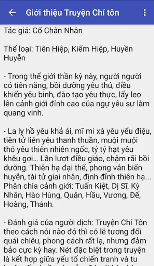 Chí tôn là truyện tiên hiệp hay thuộc thể loại kiếm hiệp huyền ảo