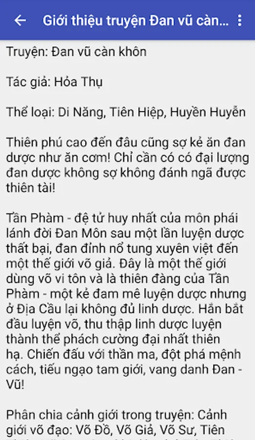 Ứng dụng đọc truyện Đan vũ càn khôn gọn nhẹ, đơn giản, nhiều tùy chọn chế độ đọc, phù hợp với nhiều đời máy từ thấp đến cao.