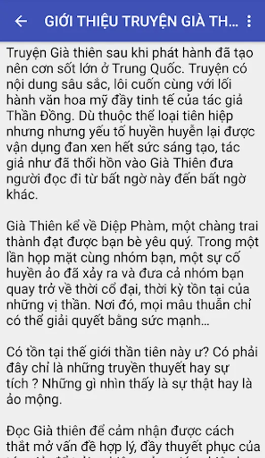 The Gioi Thien reading application is light, simple, easy to use, with many reading mode options, suitable for many models.
