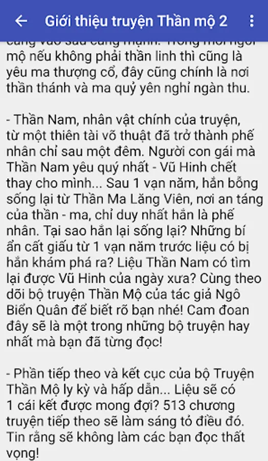 Chúc các bạn có nhiều niềm vui và thành công khi đọc bộ truyện tiên hiệp Thần mộ 2.