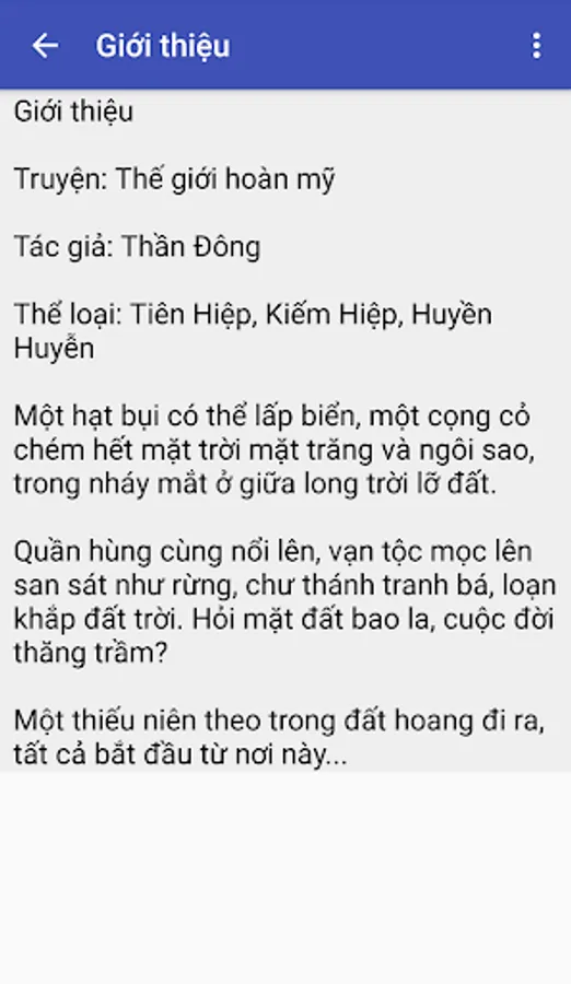Đặc trưng Ứng dụng đọc truyện Thế giới hoàn mỹ nhiều tùy chọn chế độ đọc, phù hợp với nhiều đời máy.