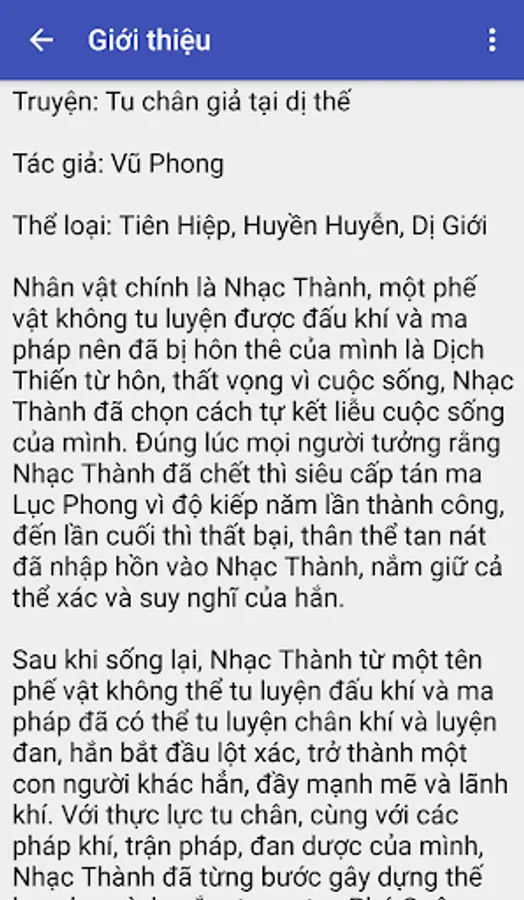 Ứng dụng đọc truyện tiên hiệp hay Tu chân giả tại dị thế được thiết kế theo lối tối giản với những tính năng cơ bản: