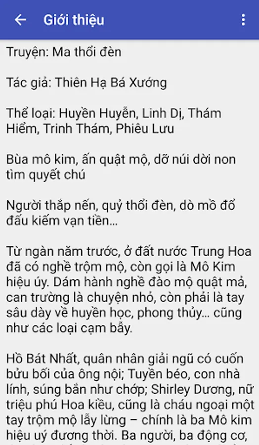 Ứng dụng đọc truyện thám hiểm offline "Ma thổi đèn" gọn nhẹ, tối giản với nhiều tùy chọn chế độ đọc, phù hợp với nhiều đời máy.