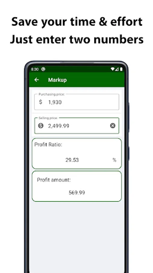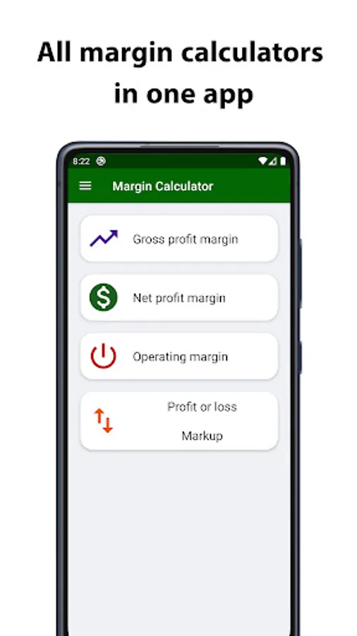 Margin Calculator is a powerful small business calculator to help you calculate net profit, cost margin, gross profit margin, operating margin, markup, profit ratio, and other necessary computations for trade and business. This powerful markup calculator will make sure you can price your items or service correctly. Understanding about how to price an item based on your margin is the key to a business profit and loss. Make sure you calculate and price your items correctly with our Margin Profit Calculator app now!