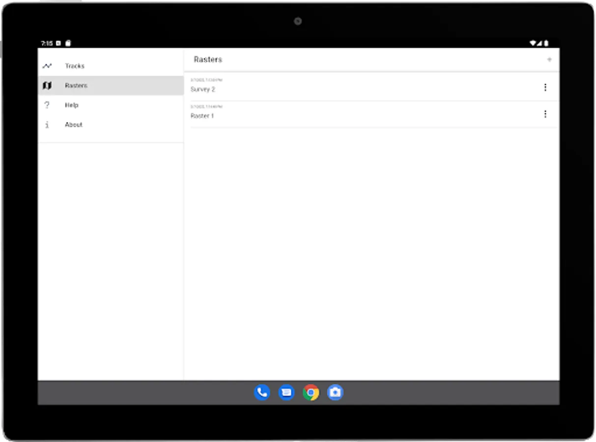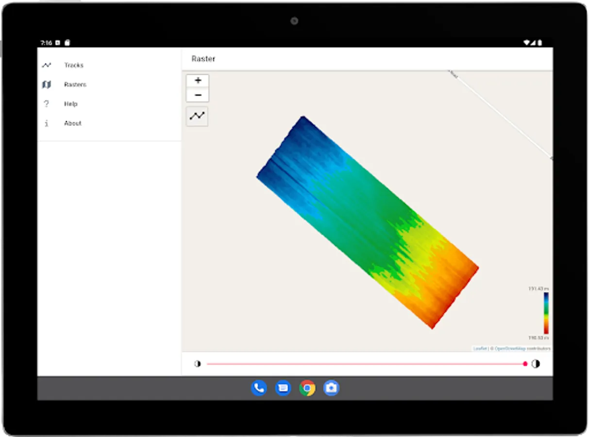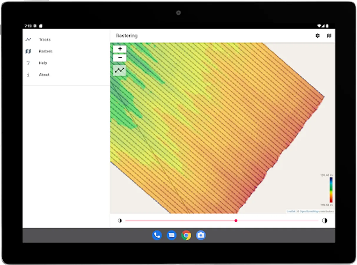 This application allows you to survey land-surfaces with your android device. This data will be converted into a digital raster model which is useful for land analysis/simulation/design. Those raster models can be exported and for example, used in QGIS