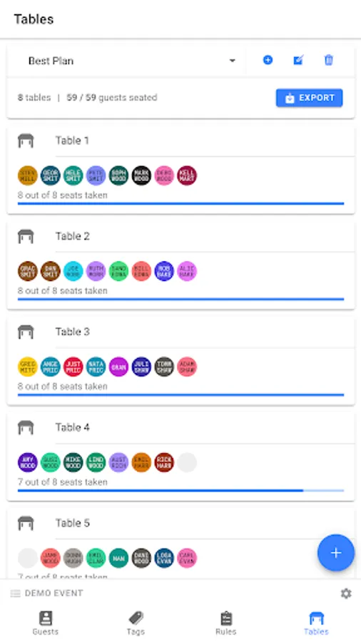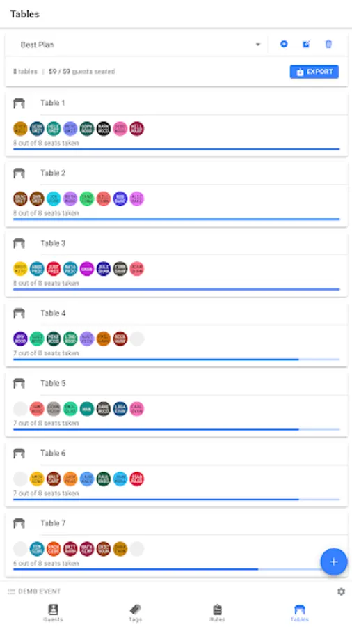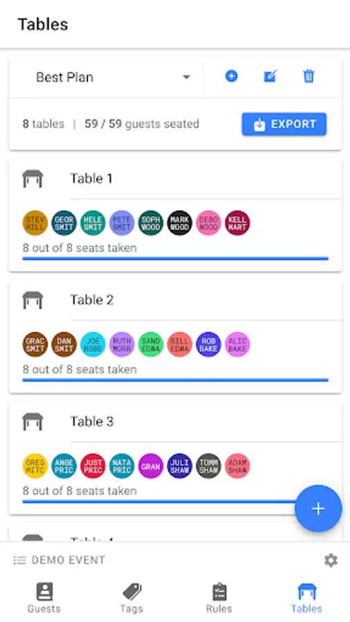 - Set up your tables and then create different seating plan variations to find what works for your guests