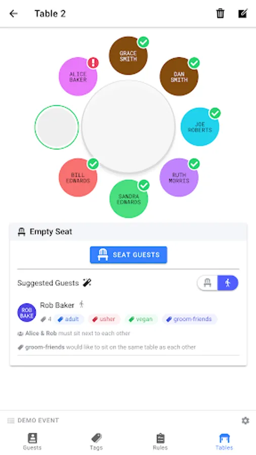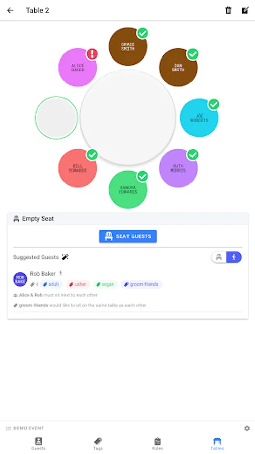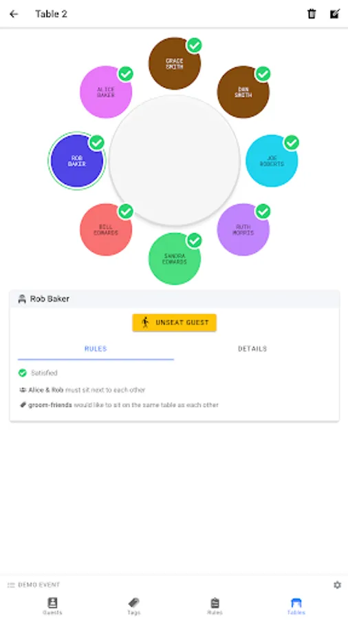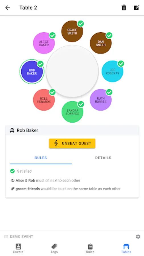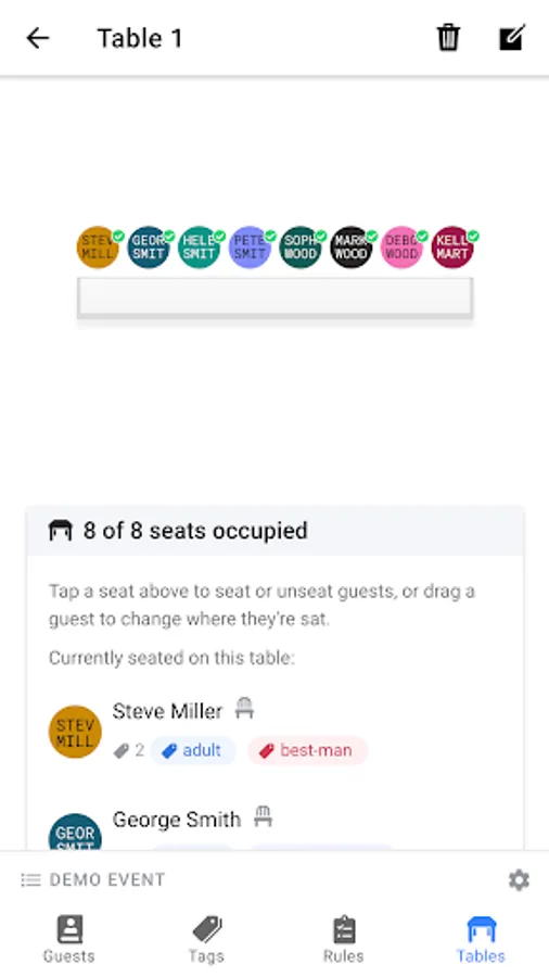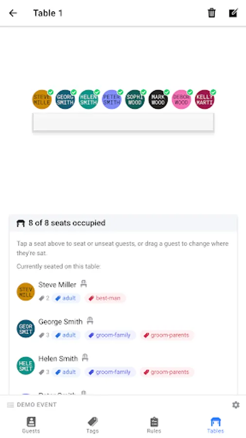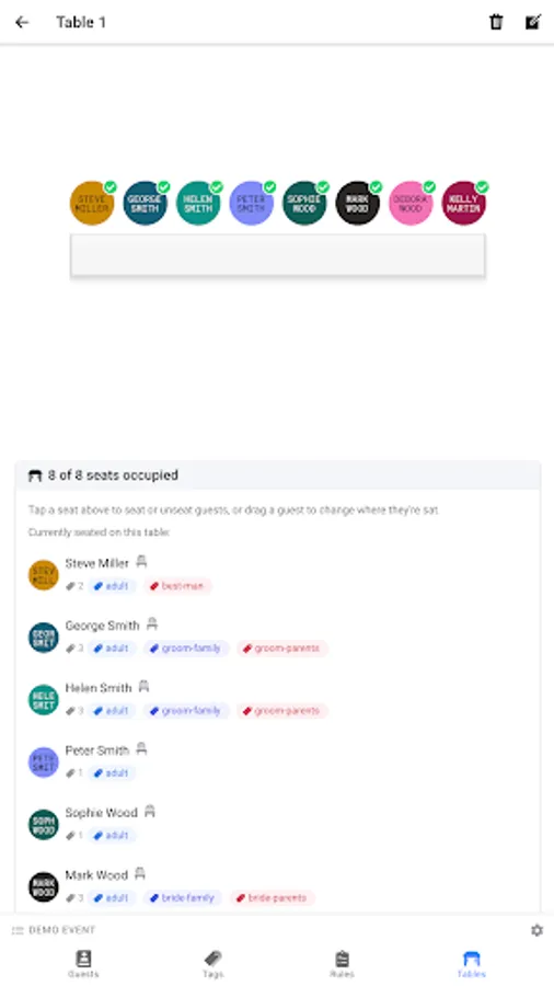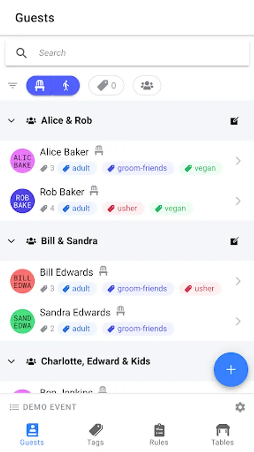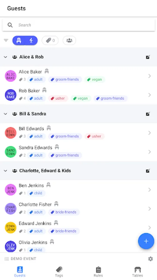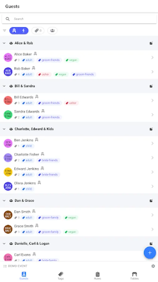 - Assign tags to guests to make it easy to organise groups of people, e.g. friendship groups, family members, social circles, dietary needs and more