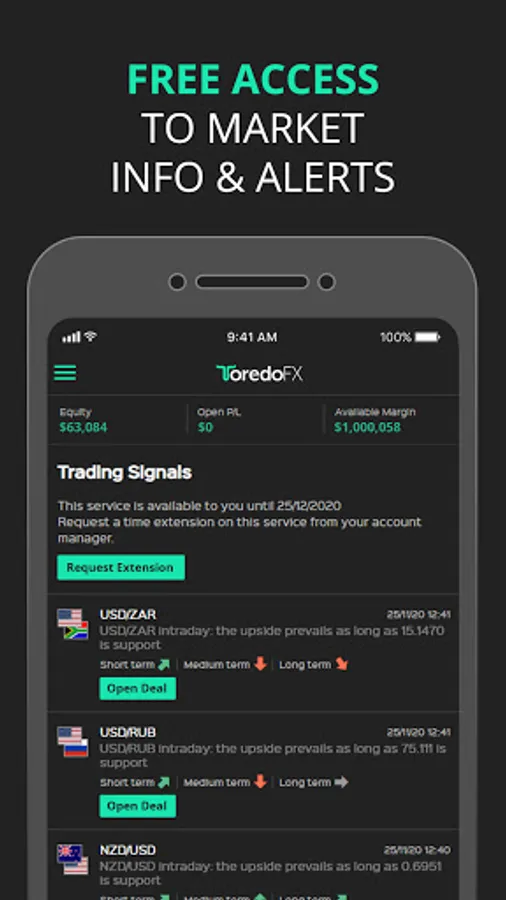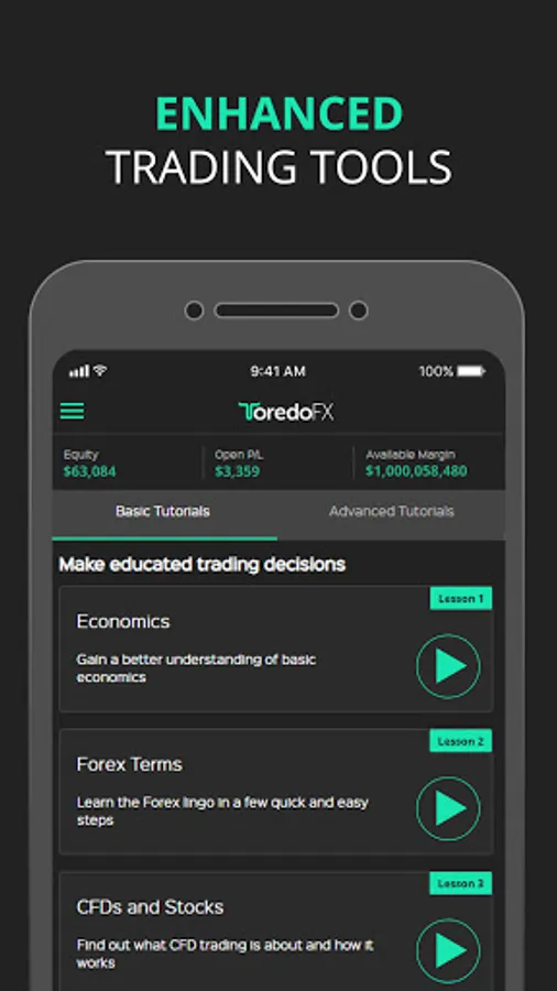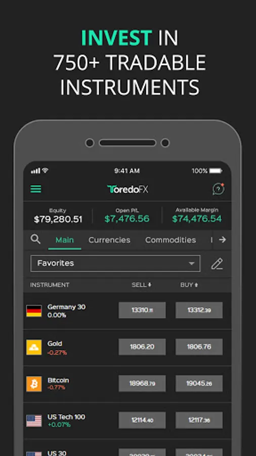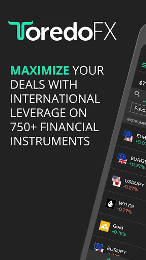 ToredoFX is a leading broker with vast experience in the financial industry, offering hundreds of financial instruments drawn from a variety of markets all over the globe. The innovative ToredoFX trading app combines advanced technology with real trader feedback to provide an excellent experience for all clients. The sleek, easy-to-navigate interface allows traders to open and close deals from anywhere, at any time, as well as provides access to educational tools, useful resources and trading features.