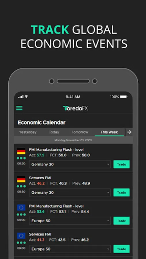 Investing wisely starts with quality trading tools. Get live charts that show the current market rates, trading signals that display crucial price movements, the latest market news, dozens of indicators and much more at ToredoFX, to help you on your trading journey. Explore market opportunities using ToredoFX's analysis features, take advantage of tight spreads, and access many educational tools such as tutorials, 1-on-1 coaching and informative articles.