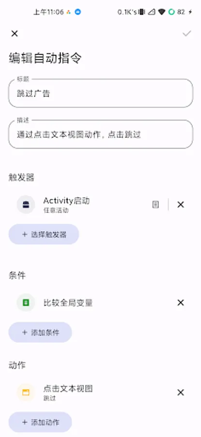 The main functions include one-key command and automatic command, similar to the color cloth command, or Miyou automatic task, or tasker, compared with other similar software, it provides more system-level operations, and it can also be understood as the scene mode ui version, but The function is biased towards the nature of daily tools, and it is aimed at ordinary players.