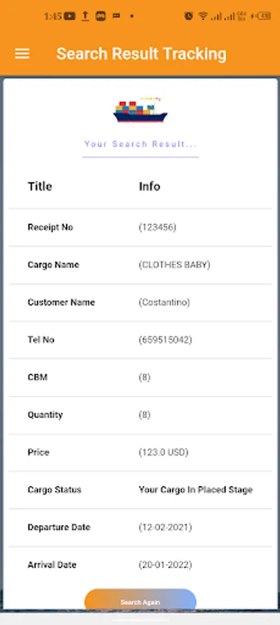 The app allow Customers from Tosh Logistics Company to track their cargo by just providing the cargo book number and phone number customer will be able to view their details.