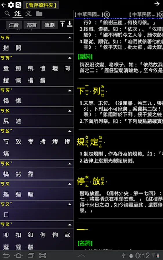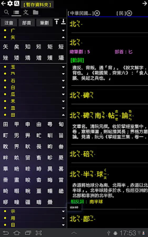 *提供【注音】、【筆畫】、【部首】列表查詢。