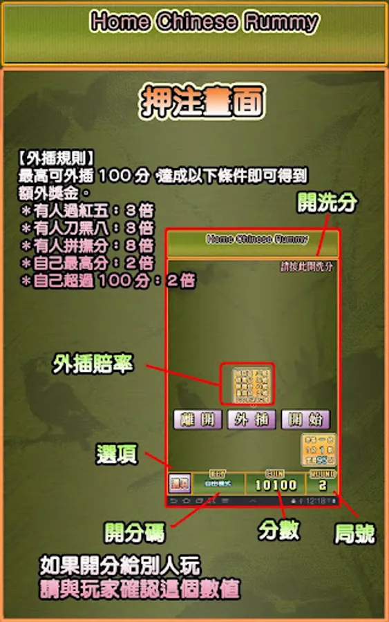 *可以自己當老闆,開分給朋友,同學玩,不論大人小孩小試一下手氣。但請勿真的賭錢哦。