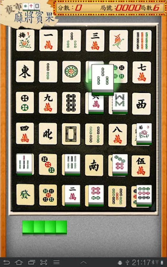 各夜市攤位規則不盡相同,本遊戲規則為,玩家於總計36個的麻將公牌中,選出15張牌並按其選出之牌樣擺入6*6之對獎底盤中。