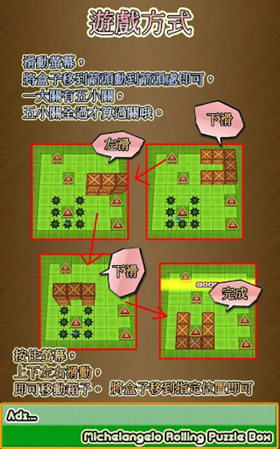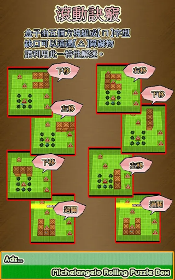 簡單有趣的益智解迷遊戲,只要將方塊滾到指定位置就可以過關