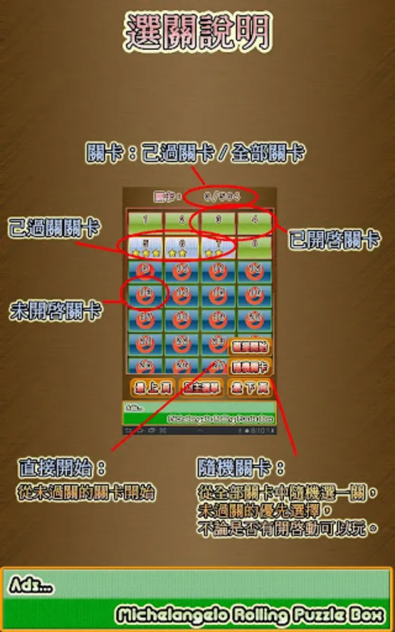 可以從上次遊戲的地方開始玩,也可以亂數啟動關卡,全部共604大關哦。