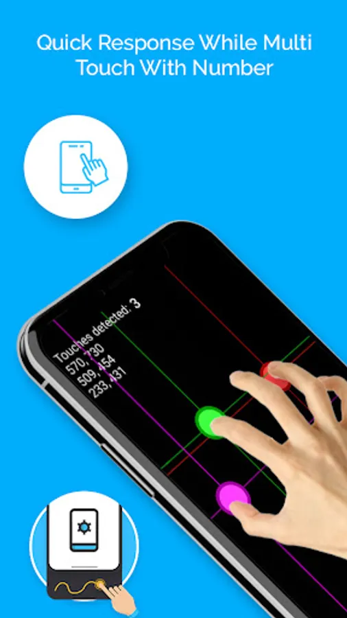 The Application calculates a reduced, uniform response time and applies it for the touchscreen on software side. With the regular use of the touchscreen, sometime you can face the touchscreen lags and stop responding problem. Touch Screen Test & Repair app analyzes phones touchscreen response time and reduces it. This app is useful to touch screen repair. This damaged screen repair tool detect the damaged screen of the phone easily. just tap on screen and find out damage part of screen. Touchscreen touch counter is an easy to use and elegant app that allows you to count the number of simultaneous multiple touch supported on your device.