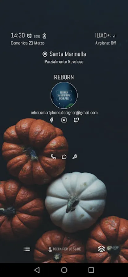 -Settings: page dedicated to the management of the KLWP theme, such as the background, language, control of the music in playback and more.