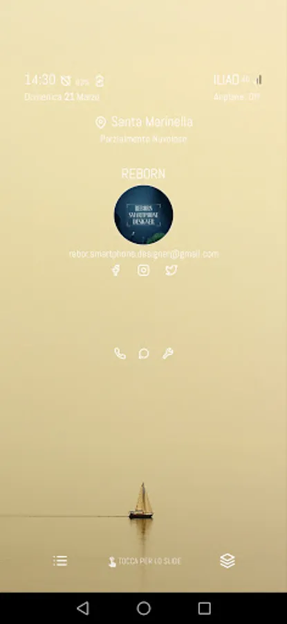 -Home: where we can find the most useful information, from the battery, user data telephone signal and more.