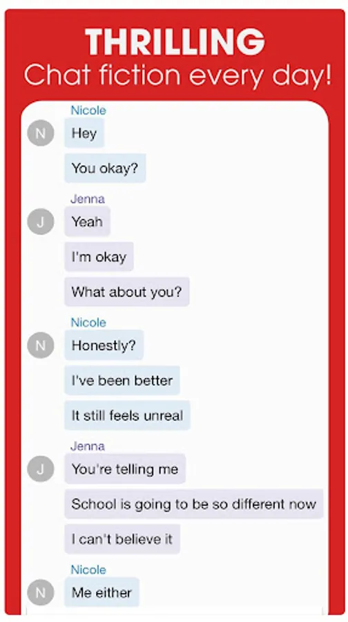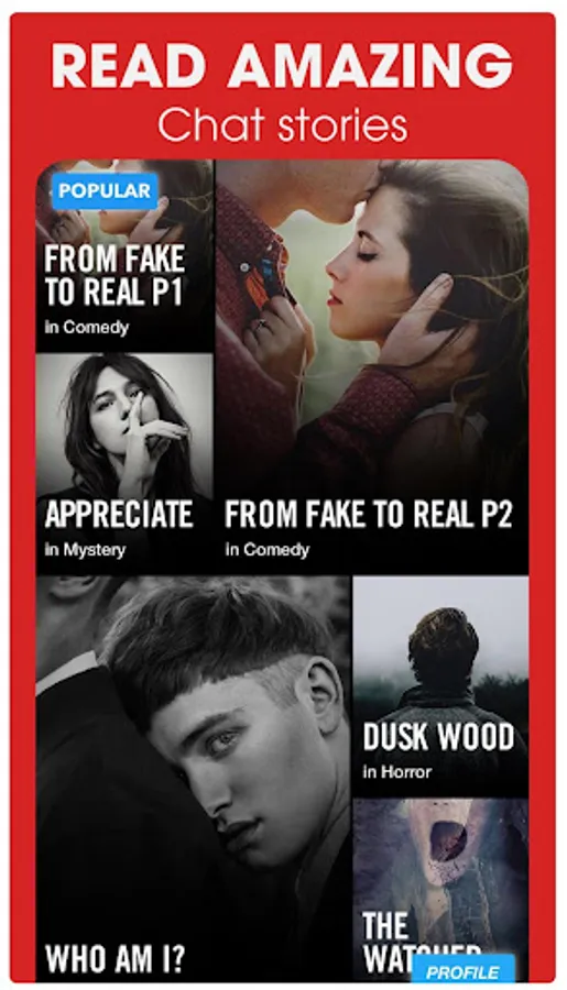 [Tap Chat Stories] offers a wide range of categories to cater to your reading preferences. Whether you're into spine-tingling horror, heartwarming romance, playful flirting, or relatable school stories, we've got it all. Engage with characters through chat conversations that make you feel like you're part of the story.