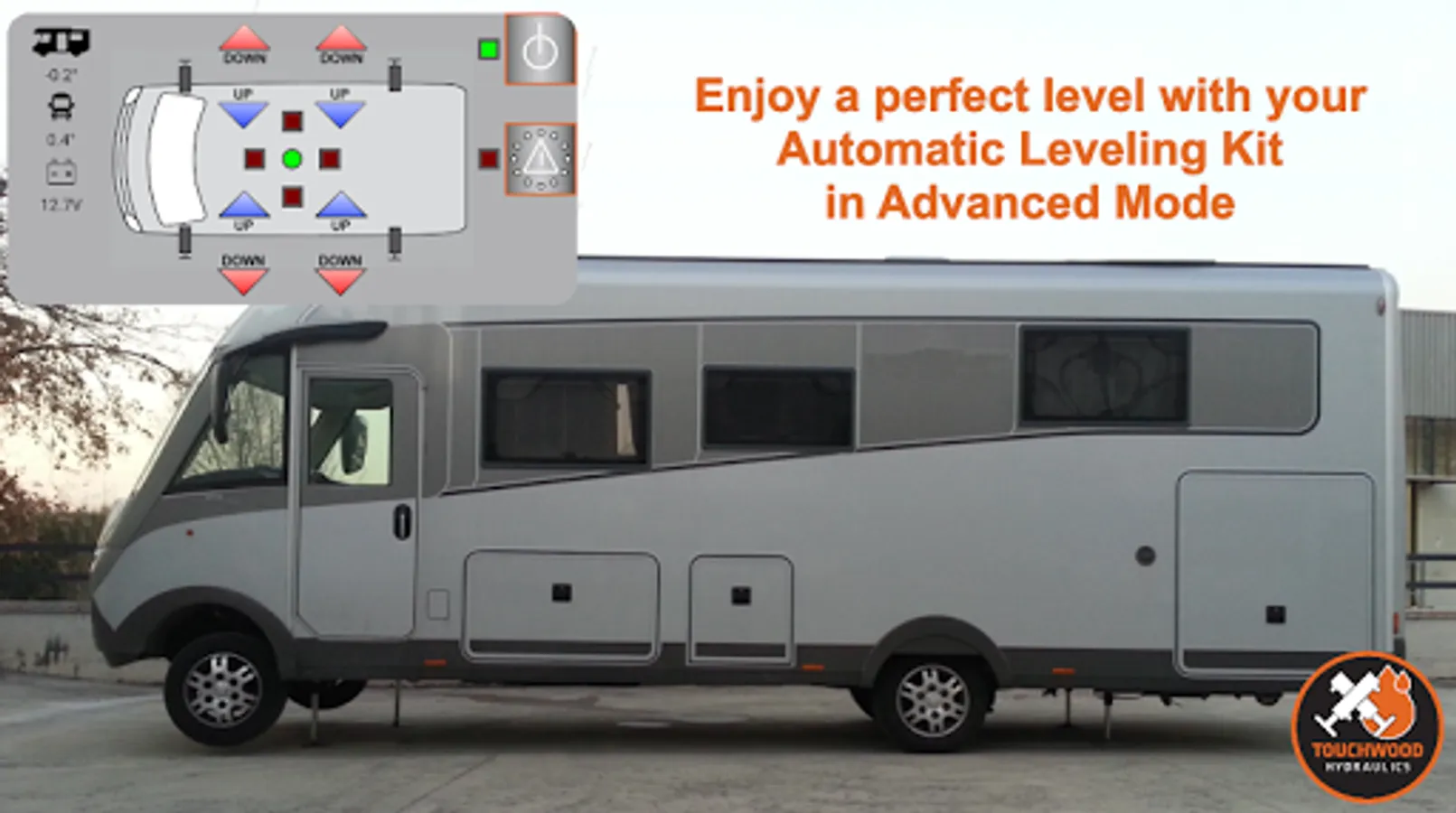 Thanks to this app it is possible to perform the automatic cycle of our leveling kit with a tap on the touch screen, and will also to perform any manual mode operation from your smartphone or tablet, for example to replace a tire quickly and effortlessly, or to completely empty the tanks. To have a stable and well-levelled motorhome while parked is the dream of every motorhome owner. Your sleep will be much better and the motor home won’t move when you do. Pots and pans will not slide away from the hob and the fridge will always light. The automatic levelling system will offer you all these and the combination of price and quality will surprise you. Designed and produced taking care of every tiny detail. We have taken into account the best quality, comfort, reliability and performance, putting this system at the top of its category. It uses an electro-hydraulic pump and features a hand lever to retract the “feet” even in case of a power failure.