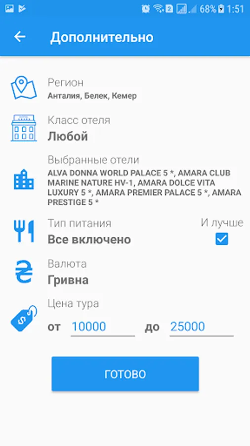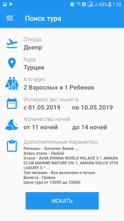 Travel Agent application allows you to search online and make the selection rounds. Also you can view the latest offerings and promotional offers from tour operators in Ukraine.