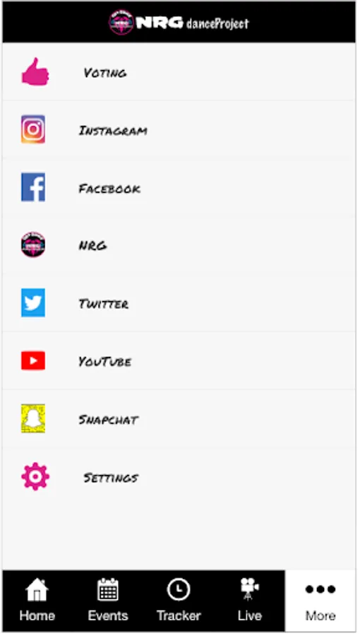 • Instagram, Snapchat and Facebook feeds, as well as access to the NRG DanceProject Website!