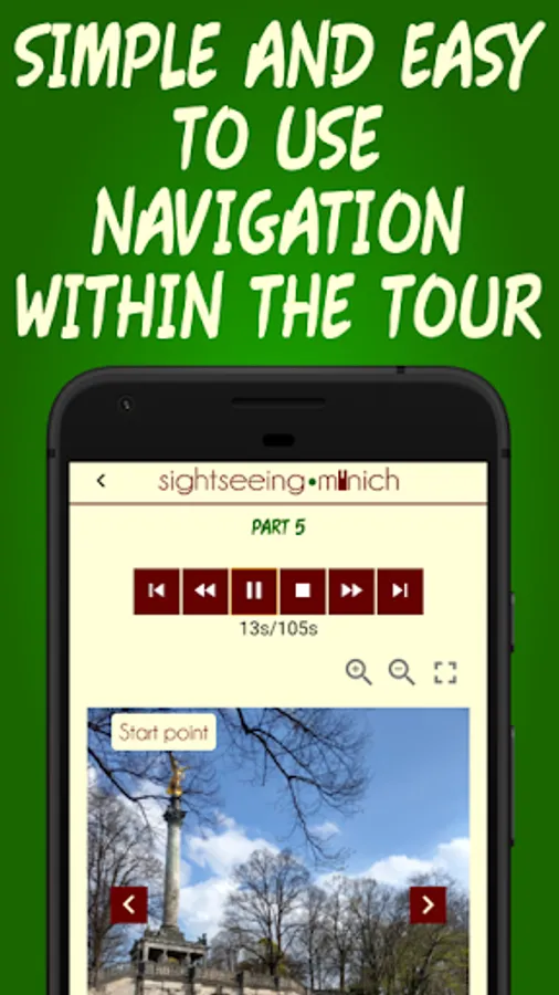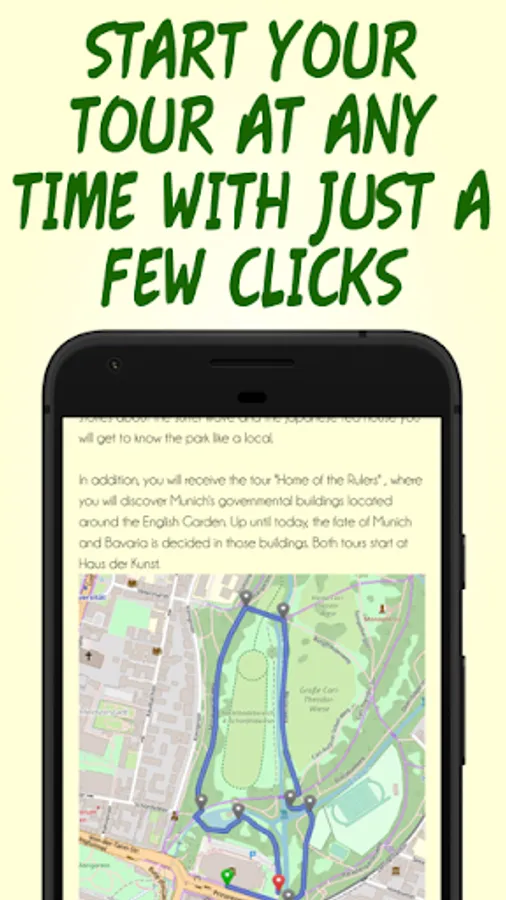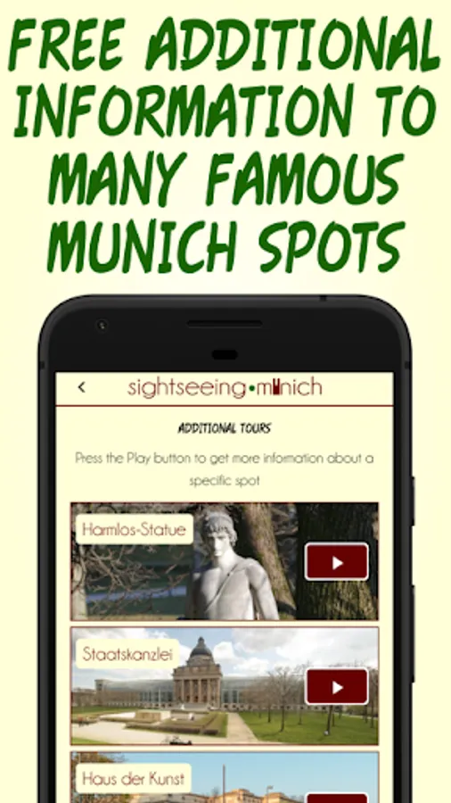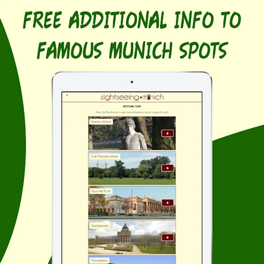 • additional locations: get free short information to famous Munich sights, e.g. Staatskanzlei, Haus der Kunst, Monopteros