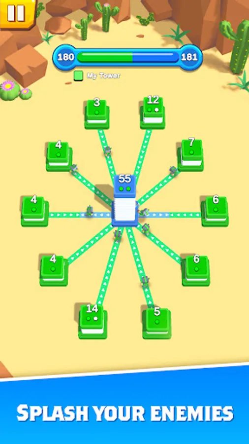 - Swipe your finger to draw a line from your tower to others with the target building and increase the number of soldiers.