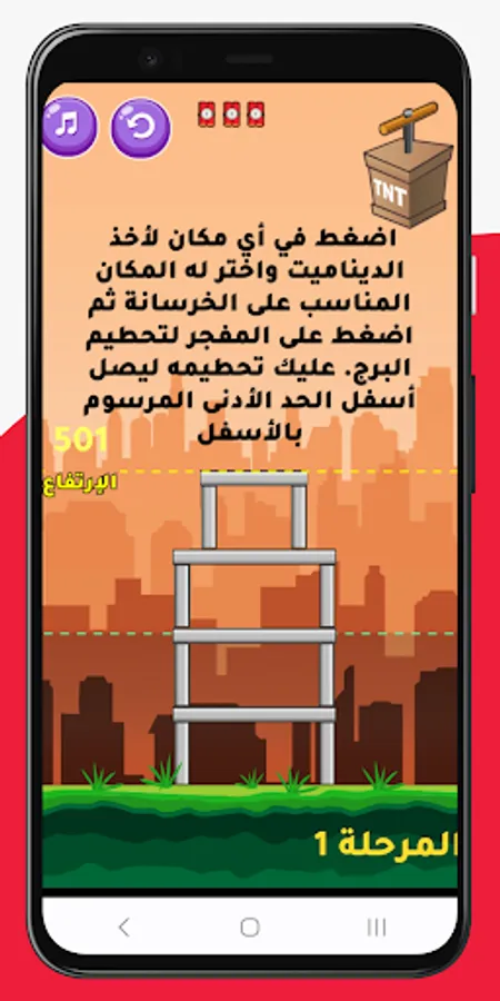 Tower Smash Game: You have to place explosives in the appropriate corners of the tower until it falls to the lower level drawn at the bottom of the game. A fun free intelligence game consisting of 45 stages that becomes more difficult in the advanced stages. Play now for free. The game is presented to you via a mobile game application